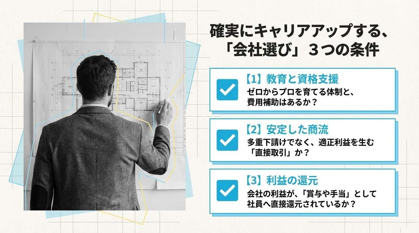 技術を磨き、安定した高収入を得るためには、「あなたの努力を正当に評価し、成長を後押ししてくれる会社」を選ぶことが何よりも重要です。
